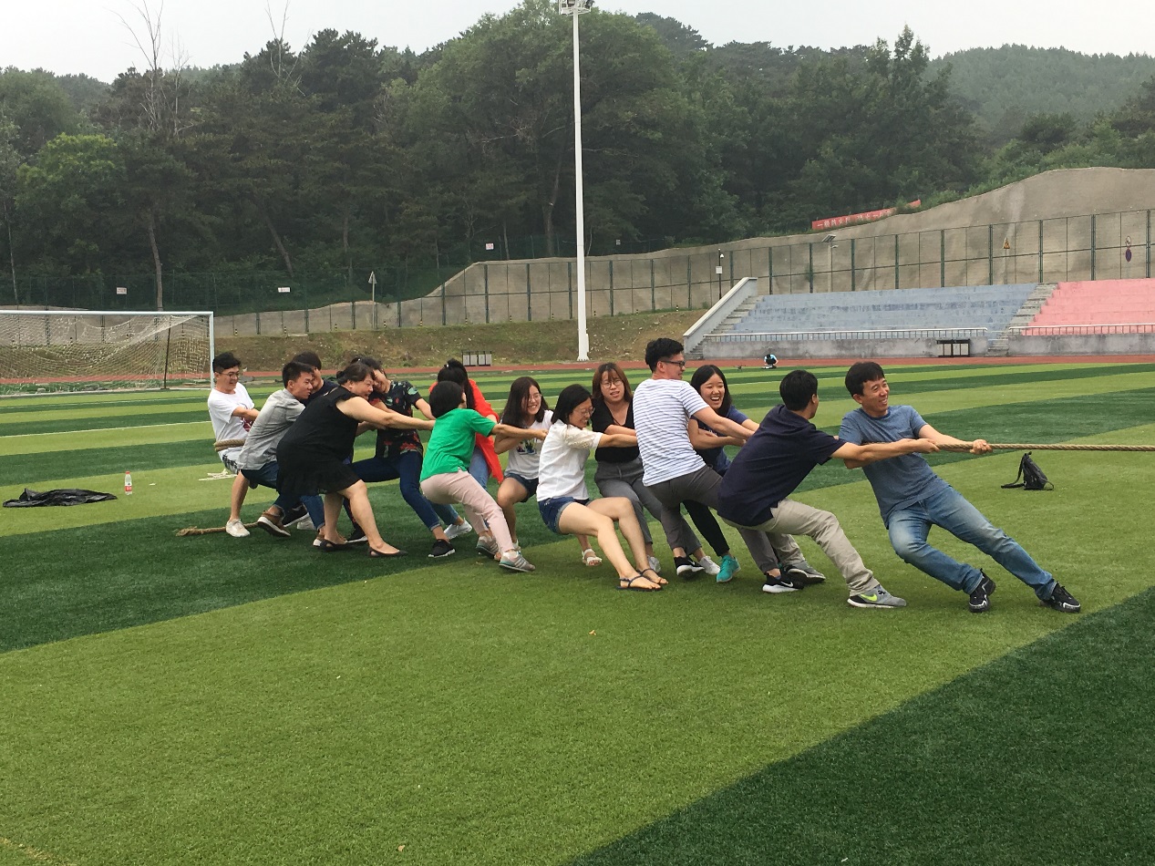 在上午的乒乓球、羽毛球和台球运动中,大家互相切磋球技,为下午的竞赛充分热身。下午的拔河比赛既是力量的较量,也是智慧的抗衡。两队纷纷使出各自“秘诀”,或注重队员排位,或发挥口号的作用,加油呐喊声震耳欲聋。趣味足球比赛则采用女性可抱球的规则,保证了全体人员的参与。队员们你争我抢,快乐地奔跑在绿茵场上,身心得到了充分放松。在愉快的笑声中比赛落下帷幕,大家意犹未尽。