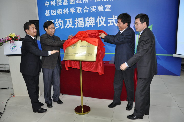 2009年12月3日下午,“中科院北京基因组研究所-浪潮基因组科学联合实验室”签约揭牌仪式在基因组所报告厅举行,双方宣布将联合各领域科研力量共同开发基因组学新技术,加速我国生命科学和高端科研装备研制的发展进程。科技部、中国科学院、山东省科技厅等有关领导出席了揭牌仪式。