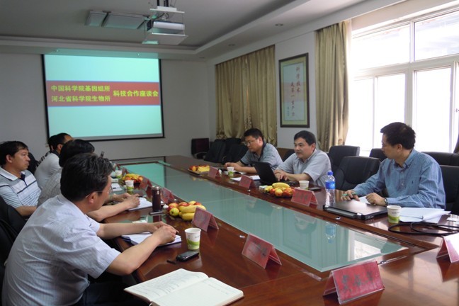 座谈会上,宋水山所长详细介绍了生物所的发展历程、研究布局、人才队伍以及近期取得的科研成果,生物所细胞生化研究室吴萌主任、生物工程研究室贾振华主任以及微生物技术室黄亚丽主任,分别报告了各自研究室的科研工作和项目执行情况。李俊雄副所长介绍了基因组所目前的基本情况、学科布局以及科研工作的进展和促进技术研发工作的思路。随后双方就中科院北京分院和河北省科学院明确的首个生命科学领域先期合作研究项目进行了深入讨论。双方一致认为,两所之间的科技合作应找准合作切入点,明确合作模式,以合作项目为基础,加强青年人才的交流与培养。双方希望根据《中国科学院河北省人民政府“十二五”期间全面科技合作协议》,在中科院与河北省共建河北省科学院的框架下,开展合作研究,共享科技资源,促进一批高水平青年人才的培养,并积极推进双方合作研究科研成果转化工作。
