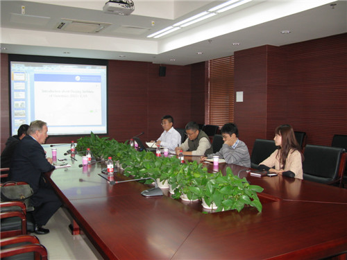 严江伟首先代表研究所的同仁对来宾的到来表示欢迎。随后,翟微波向来宾简要介绍了基因组所的基本情况、科研重点及已取得的科研成果。接下来参会人员就未来合作的相关领域和拟开展的合作展开了热烈的交流和讨论,讨论的重点集中在植物基因组学方面。W Pritchard教授对我所在植物基因组学方面的研究及成果表达了浓厚的兴趣,双方均希望在未来加强交流,推进实质性合作。会后,严江伟等陪同W Pritchard教授参观了研究所基因组测序平台、高性能计算机室及实验室。