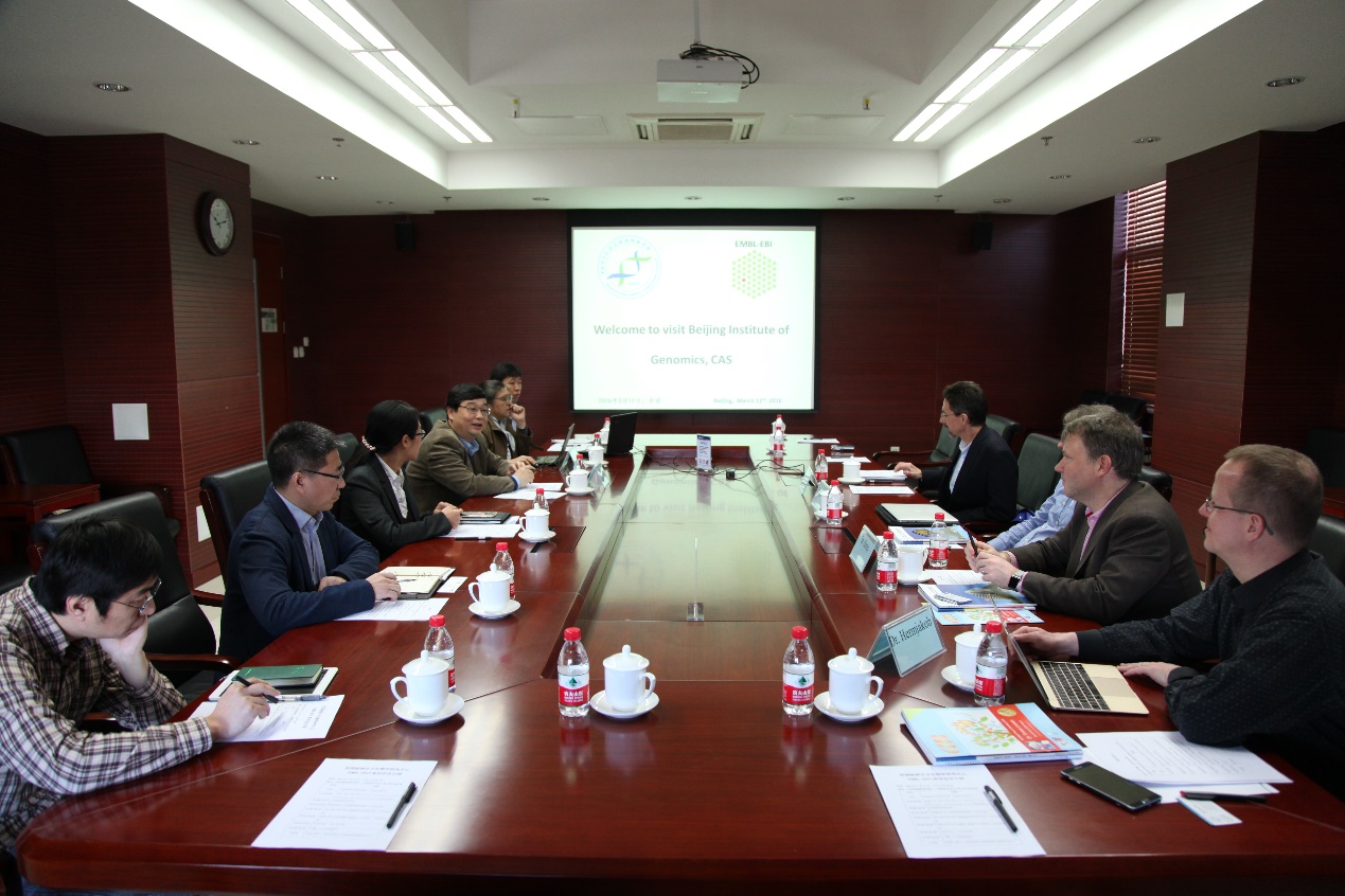 3月11日上午,英国欧洲生物信息学研究所(EBI)两位所长Dr. Ewan Birney和Dr. Rolf Apweiler一行4人到北京基因组研究所进行学术交流,双方进行了友好座谈。