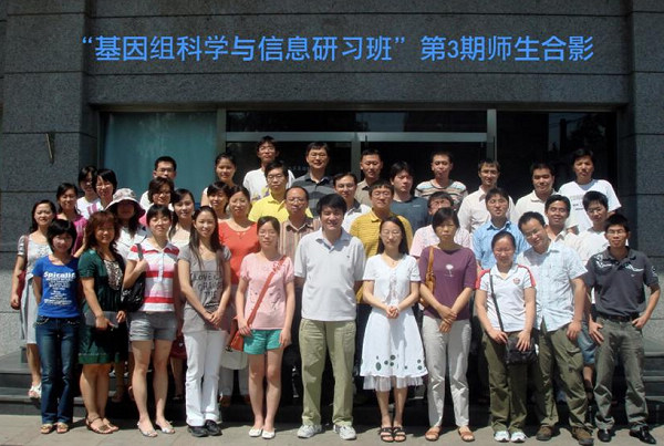 中国科学院北京基因组研究所于2009年6月1 - 5日,在北京成功举办了第3期“基因组科学与信息”培训班。来自全国多个地区的40位学员参加了此次培训。学员们大多是从事生命科学、农学、医学等领域的科研工作者和高校教师及研究生。他们有来自中科院系统的微生物所、遗传发育所、植物所和昆明动物所的老师和学生;也有来自北京人民医院、北京肿瘤医院、河北医科大学第四医院的医生;还有来自中国农业科学院、哈尔滨医科大学、四川农业大学、吉林省农科院、昆明医学院法医学院、哈尔滨师范大学、北京大学、中国水产科学研究院、广西农科院水稻研究所、四川省泸州医学院、中国农业大学、吉林农业大学和国家人口计生委科学技术研究所的老师和学生。