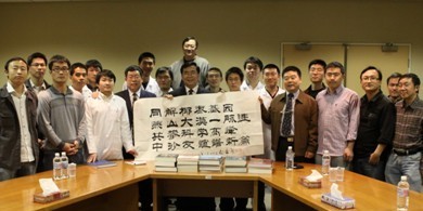 白春礼十分关心项目组中方人员的学习生活,此行还特地向大家赠送了近百册的基因组领域及社科类畅销图书。并特地为项目组撰写了“同解椰枣基因,燕山大漠一脉连;共攀科学高峰,中沙友谊谱新篇”的题词。