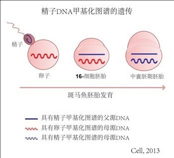 此研究阐明了斑马鱼子代早期胚胎完全继承精子的甲基化图谱。之后斑马鱼以精子甲基化图谱为基础进行细微重编程,此重编程仅限于局部区域的甲基化变化,从而分化出不同细胞、器官等。研究说明在斑马鱼中除了DNA可以从亲代传递到子代外,精子的DNA甲基化图谱也可以被遗传到子代中,并用于指导胚胎早期发育。