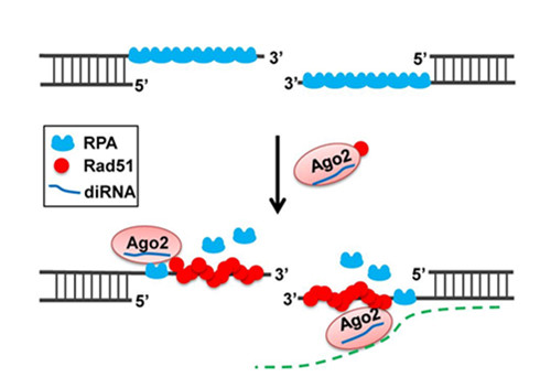 Ago2Rad51结合,并在diRNA的指导下,促进Rad51DNA双链断裂位点的招募或滞留,