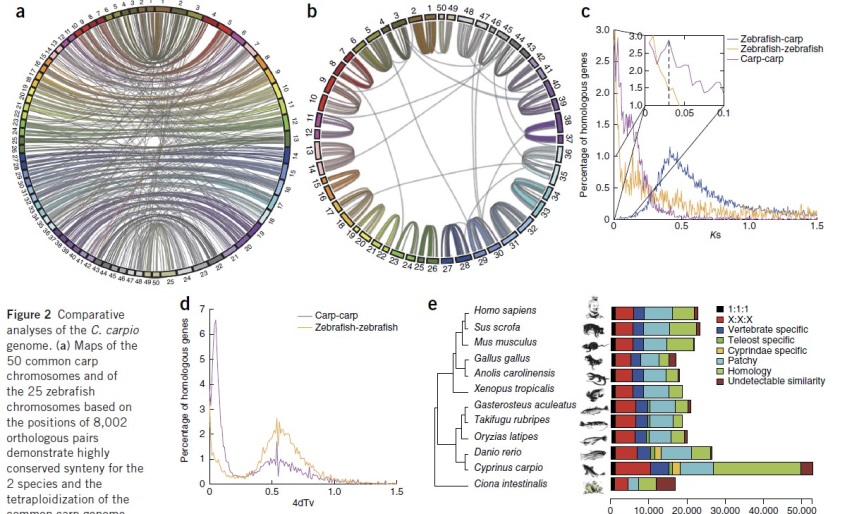 近日,中国科学院北京基因组研究所于军研究组联合中国水产科学研究院、哈佛大学、奥本大学等单位完成了鲤鱼全基因组序列图谱绘制,这也是国际上首个完成全面解析的异源四倍体硬骨鱼类基因组图谱。该研究成果于2014年9月21日在国际生物学权威期刊Nature Genetics在线发表。