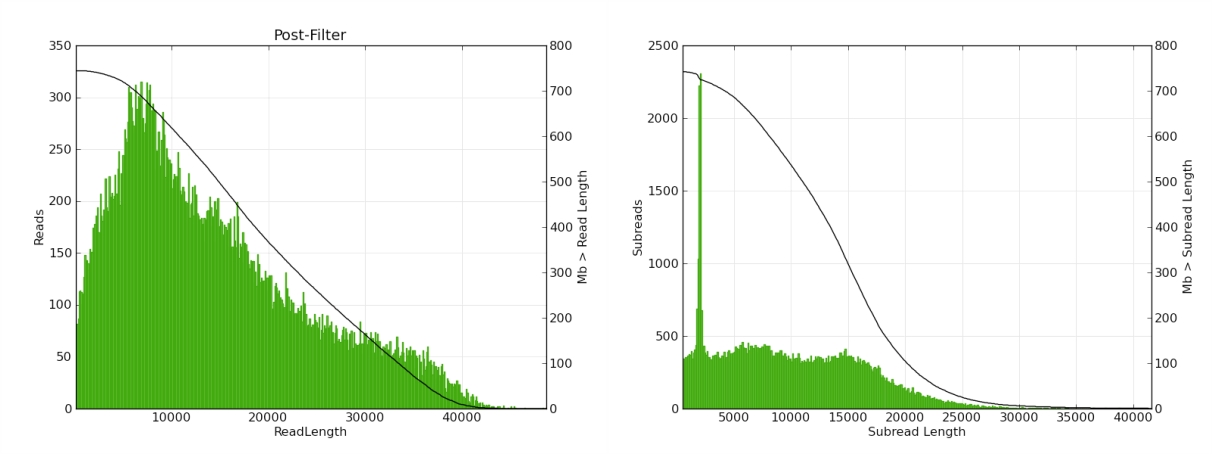 PacBio 测序read和subread长度分布