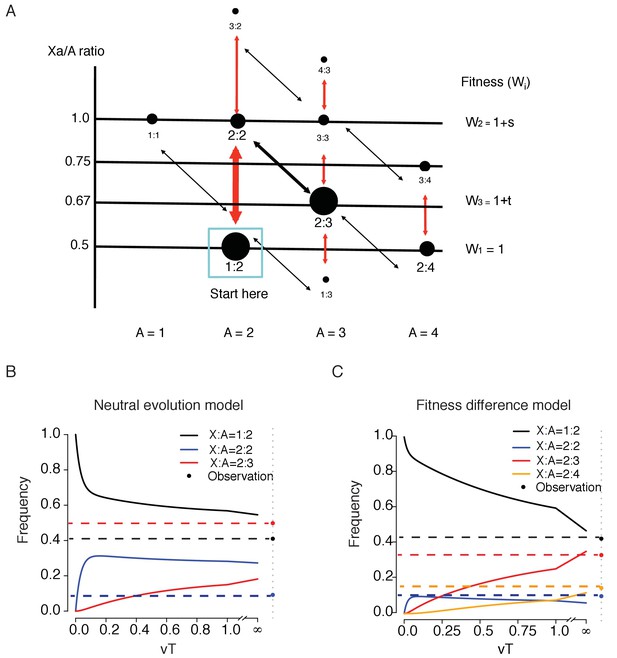 研究发现,大多数情况下,雄性来源的细胞系丢失了Y染色体,雌性来源的细胞系丢失了失活的X染色体,细胞系细胞都趋向于“去性化”。科研人员进一步发现,有活性的X染色体会加倍,同时常染色体倍增为三倍型,使得X染色体拷贝数与常染色体拷贝数的比例从1:2变成了2:3。数据还显示,肿瘤细胞的适应性会随着X染色体拷贝数与常染色拷贝数的比例变化而变化。据此科研人员构建出染色体核型演化模型,在理论上证实,当X染色体拷贝数与常染色体拷贝数比例为2:3时,细胞的适应性最高。