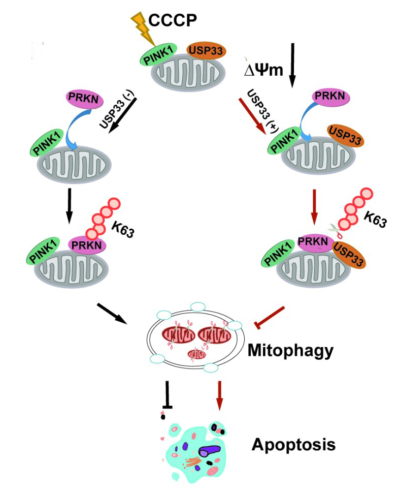 在线粒体解偶联剂CCCP处理下,去泛素化酶USP33调控PINK1-Parkin介导的线粒体自噬过程