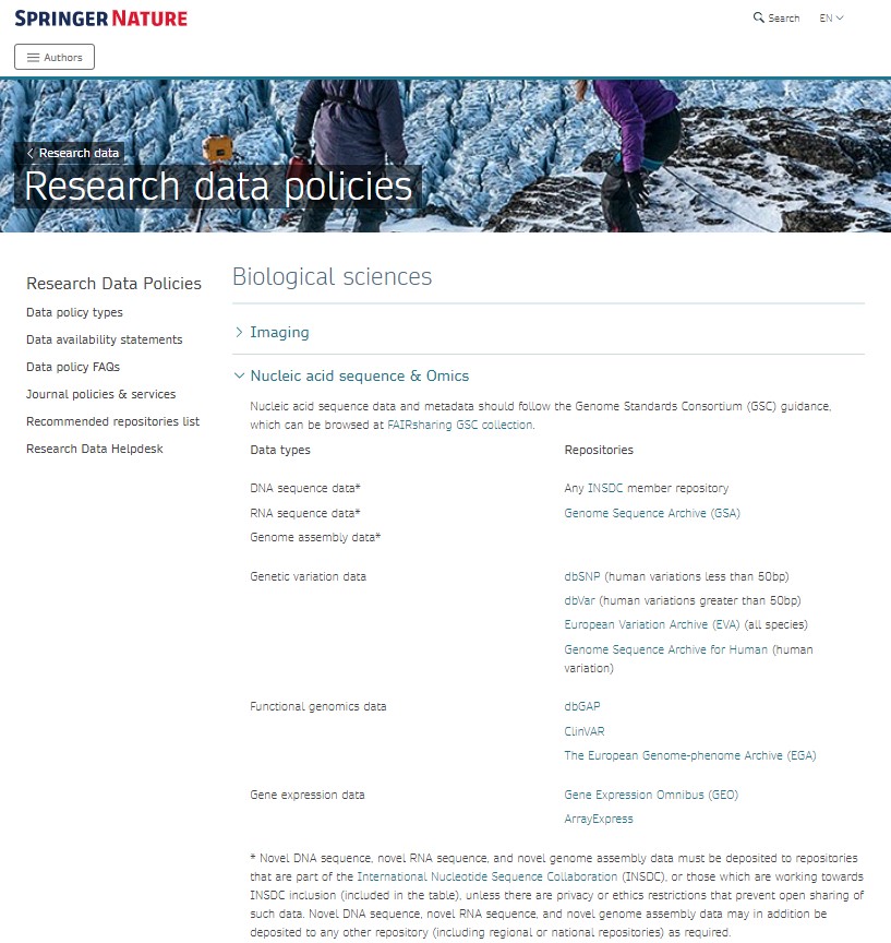 8月4日,国际著名出版社Springer Nature在其官网中将北京基因组所(9323彩票)国家基因组科学数据中心(CNCB-NGDC)开发并运行的组学数据归档库,即GSA和GSA-Human,列为其推荐使用的数据存储和共享系统,Springer Nature旗下的3000多个期刊都将认可GSA数据库。目前,GSA已经获得Elsevier、Wiley、 Taylor & Francis 、Cell及 Springer Nature出版集团认可,表明GSA已经获得领域内几乎所有国内外期刊认可。