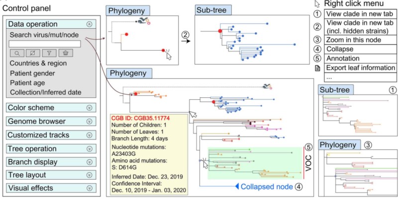 新冠病毒基因组浏览器的用户界面和操作示意