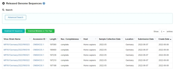 猴痘病毒基因组序列发布动态