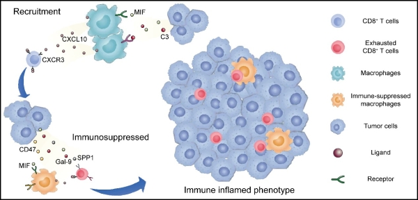 CD8+ T细胞、巨噬细胞和肿瘤细胞之间的相互作用