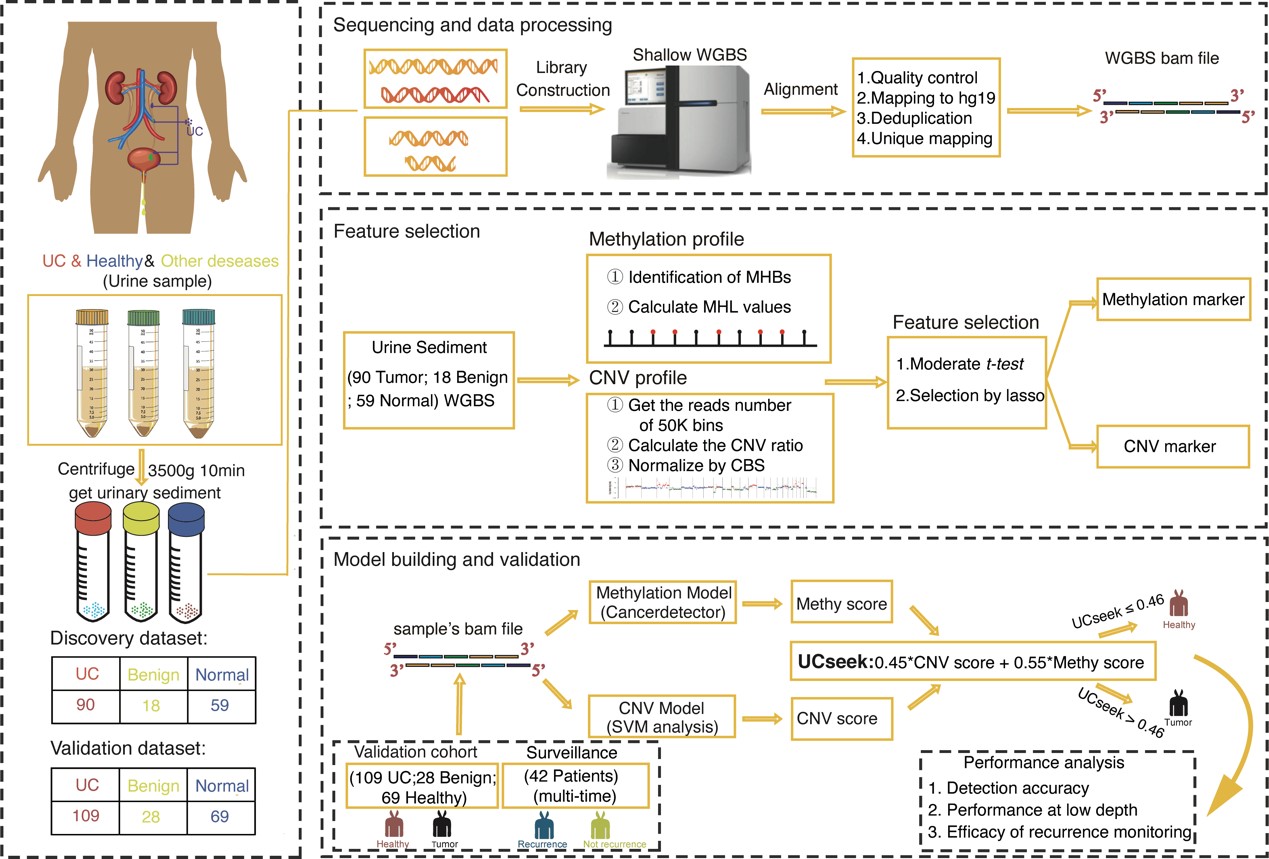 基于尿沉渣DNA甲基化测序开发的UCseek流程图