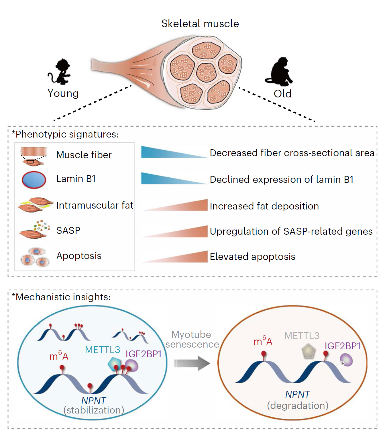 METTL3-m6A-NPNT通路调控灵长类骨骼肌衰老