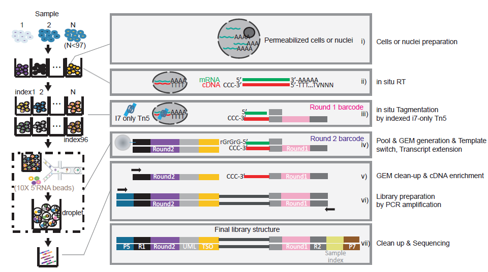 综上所述,新型单细胞测序技术突破现有技术的设计局限,大幅提高了效率并降低了成本,适用于单细胞转录组和调控元件活性、免疫受体序列等多模态分析,可有力支撑跨器官水平的大规模参考细胞图谱研究、跨时间和空间的器官发育研究等,针对大规模健康人和疾病(例如癌症,自身免疫,新冠等)的队列细胞图谱研究,高通量CRISPR基因编辑和药物筛选的单细胞分子表型刻画研究等。