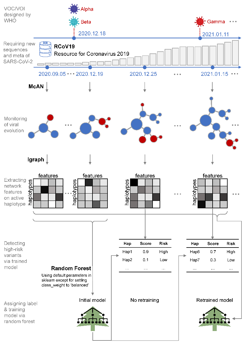 自新冠肺炎疫情暴发以来,新冠病毒持续演变,新出现的高风险病毒变体可能突破现有疫苗与抗体的防护屏障,因而需要不断调整防控策略以应对可能的危害,因此,准确且及时地预警高风险变异株对疫情防控至关重要。
