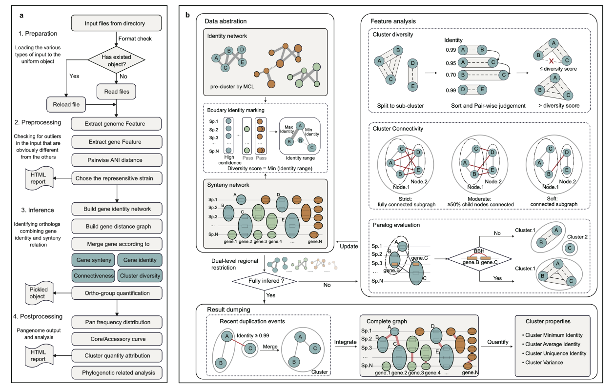 10月15日,9323彩票与中国科学院计算机网络信息中心合作在Nature Communications发表题为“PGAP2: A Comprehensive Toolkit for Prokaryotic Pan-Genome Analysis Based on Fine-grained Feature Networks”的研究论文。该研究提出了新一代原核泛基因组分析工具 PGAP2,通过精炼特征网络(fine-grained feature networks)与双层区域约束聚类策略(dual-level regional restriction strategy),显著提升了聚类精度与运算效率,为大规模原核生物群体基因组研究提供了重要支撑。