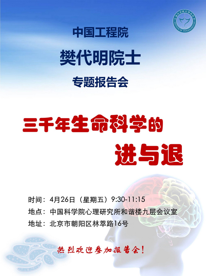 中国工程院副院长樊代明院士应中科院心理所邀请,来所进行专题报告。