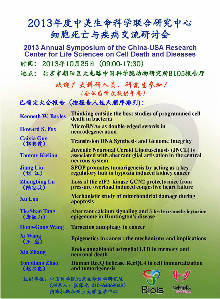 中美生命科学联合研究中心细胞死亡与疾病研讨会