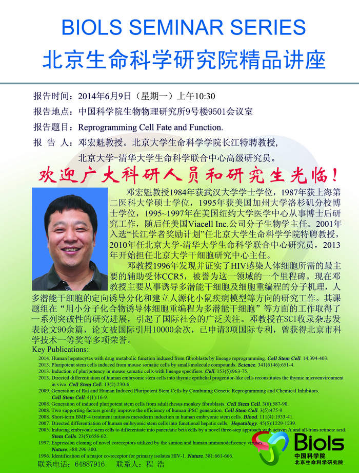 北京生科院6月9日精品讲座