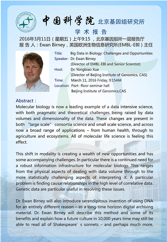 北京基因组所学术报告通知-Big Data in Biology: Challenges and Opportunities
