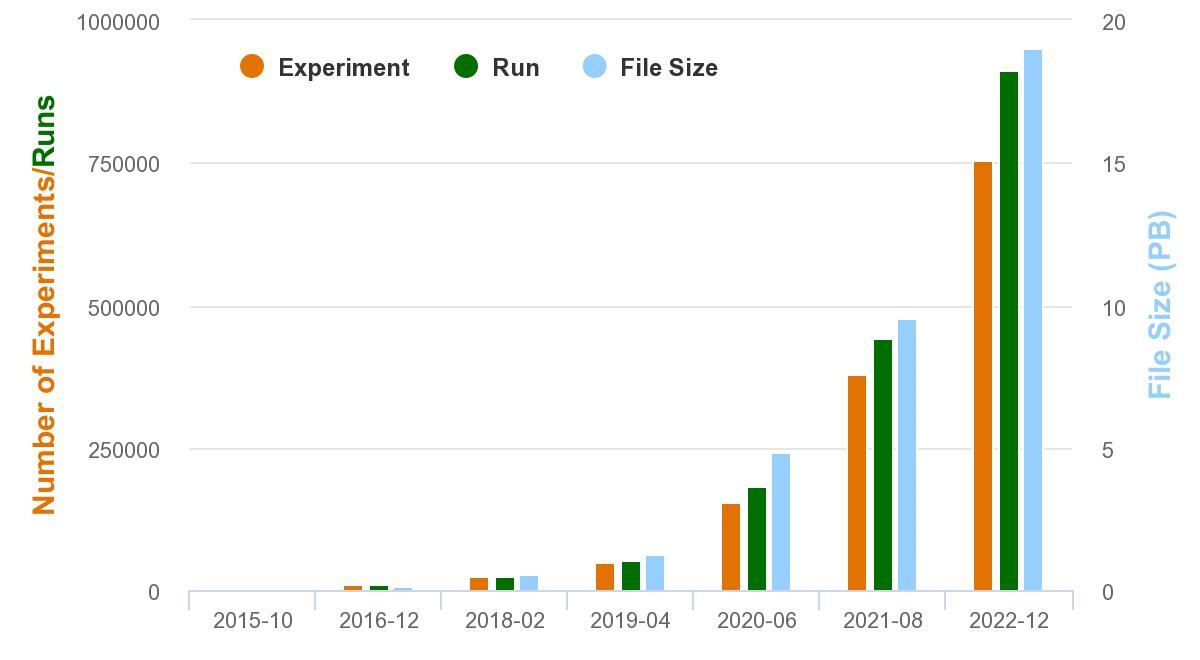 CNCB-NGDC汇聚全球数据,免费为国内外用户提供一站式多组学数据汇交和存储服务,发布的数据编号被Springer Nature、Elsevier、Wiley、Taylor & Francis、Cell等全球主要出版集团认可。截至2022年12月20日,组学原始数据管理体系(GSA Family)已支持各类科技项目10900多个,汇交数据量近19PB,来自754家单位3500名用户,相关数据已发表在457种国内外期刊的近2000篇文章。2022年7月起CNCB-NGDC承担国家人类遗传资源信息管理备份平台运行维护任务,实现国家人类遗传资源信息一体化管理、备份、发布与共享。新冠病毒信息库(RCoV19)不断更新,目前已收录新冠病毒序列超1400万条,为全球181个国家/地区240多万名访客提供数据服务,累计数据下载达100多亿条,在新冠病毒演化分析、监测、溯源等方面发挥了重要作用,入选2022年世界互联网领先科技成果手册。