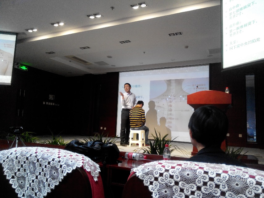 讲课中,李医生用通俗易懂的语言向与会科研人员讲述了人体穴位的基本知识以及穴位针灸按摩治疗的基本理论,并现场示范了如何进行穴位按摩。活动现场气氛热烈,科研人员通过学习掌握了多种缓解工作疲劳和压力的实用按摩方法,与李医生进行了充分的互动交流。