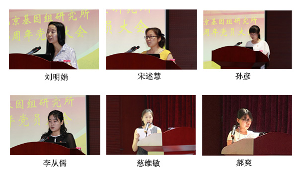 研究所各支部推选的6名党员代表分别以“我是共产党员”为主题,结合自身工作和学习实际,交流了个人认识和体会。行政支部的刘明娟以自身成长的心路历程和在工作中的感悟,表达了作为一名共产党员,要不断学习,发挥所长,做好研究生心理健康和各项工作的决心;大数据与所级中心支部的宋述慧副研究员回顾了自己到所10多年以来的学习和工作经历,特别是面对不断变革的环境和自身发展要求,党员科研骨干如何带头适应学科发展和研究所改革发展趋势,在困难和挑战面前勇于担当,并以共产党员的要求完成好各项任务;基因组科学与信息重点实验室第一和第二支部的孙彦和李从儒作为研究生党员,表达了青年党员对党的热爱和对党的认识,表示要加强党的历史和理论学习,坚定理想信念,明确党员责任,增强党性修养,查找分析不足,争做优秀党员;精准基因组医学重点实验室第一支部的慈维敏研究员作为青年科技工作者党员代表,通过自己学习、出国和在所工作成长的经历,表达了对党和国家的感激之情,表示要发挥共产党员的模范带头作用,在科技创新和人才培养中做出贡献;该实验室第二支部的郝爽在发言中谈到自己作为研究组科研秘书,要立足本职岗位,脚踏实地,服务大局,甘于奉献,做一颗合格的“螺丝钉”。大家一致表示将在本职岗位上以共产党员的标准严格要求自己,时刻不忘“我是共产党员”。