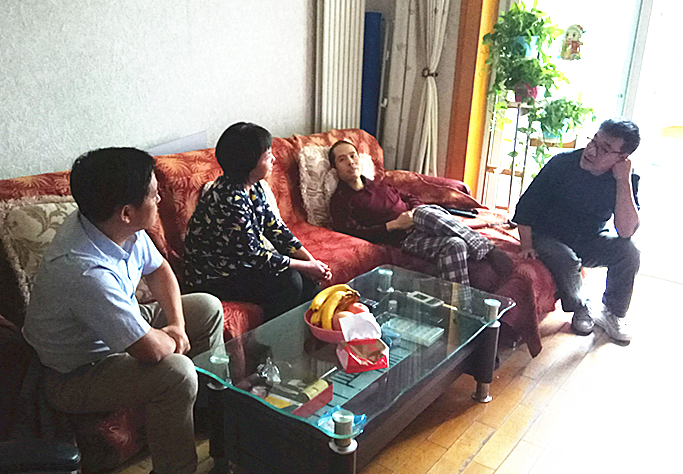在困难职工张晓伟的家中,所领导详细询问了他的病情及治疗情况,认真与从外地来照顾他生活的父母交谈,听取意见并了解生活中遇到的困难。鼓励晓伟要积极治疗,对于生活碰到困难的现状,所里会尽力帮助度过难关。一同看望晓伟的胡松年研究员将研究室的近况向他做了介绍,转达了全室同志的问候,并表示将从医疗和生活各个方面给予支持帮助。