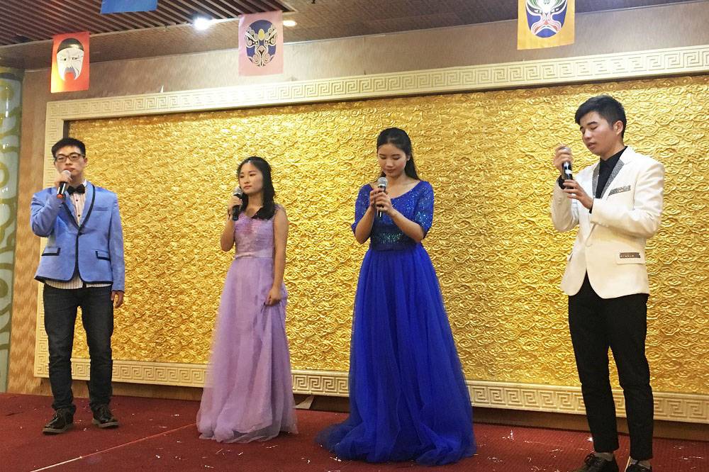 所领导及导师代表也为大家带来了精彩的节目,王丽萍演唱了充满热情、豪情和柔情的歌曲《我爱祖国的蓝天》,曾长青研究员演唱了舒缓而温情的英文乡村歌曲《Sunshine on My Shoulders》,并送上了真挚的新年祝福,刘凡研究员也为大家吟诗一首,表达了在国外学习和工作时对祖国和家乡的思念之情,并激励同学们坚持不懈、不断奋进,做出高质量的科研成果。