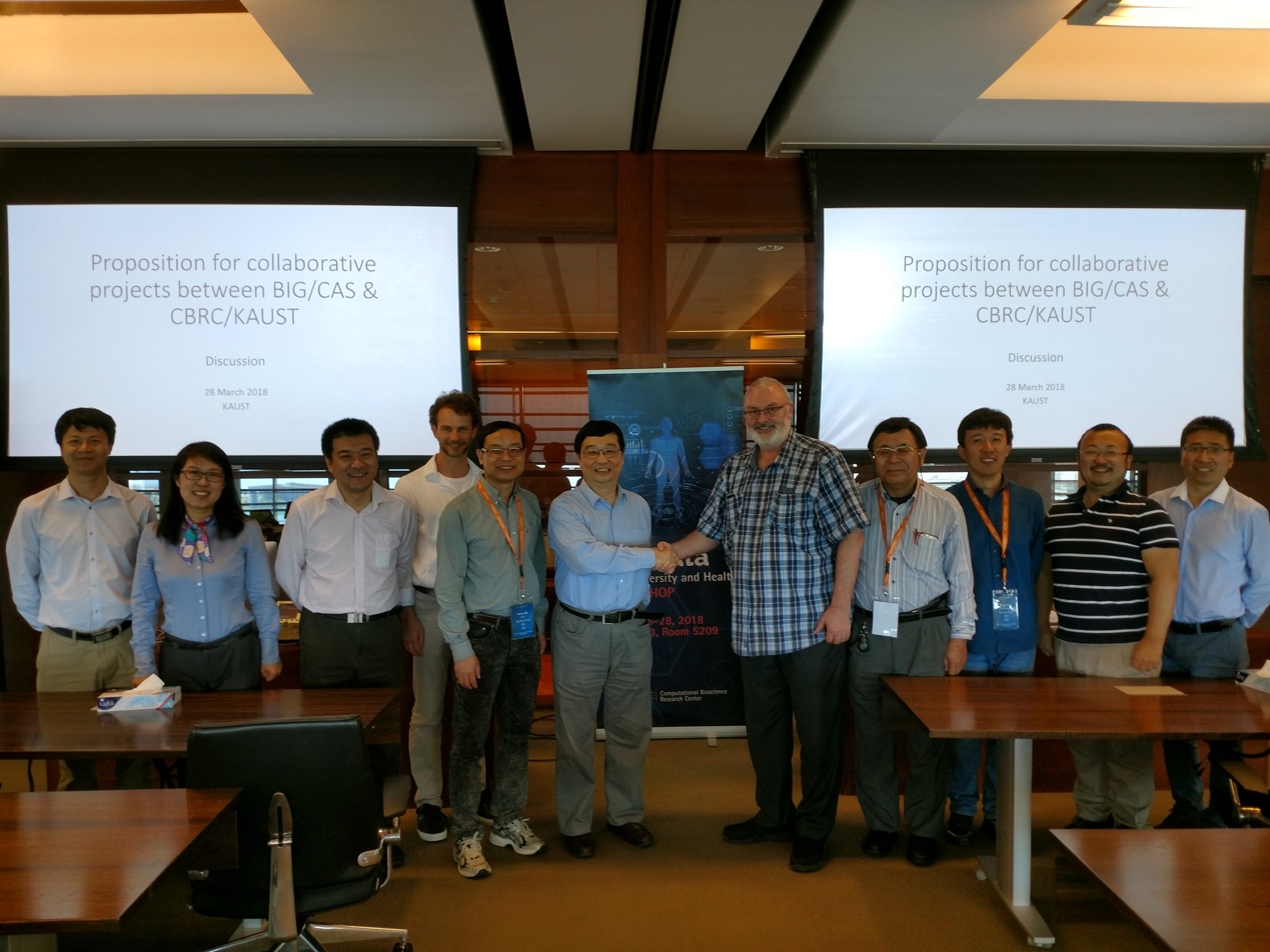 3月25-28日,中国科学院北京基因组研究所所长薛勇彪一行7人,应沙特阿卜杜拉国王科技大学(King Abdullah University of Science and Technology)生物计算研究中心主任Vladimir Bajic邀请,赴沙特阿卜杜拉国王科技大学就生物多样性与健康大数据共享、共同构建国际生物多样性与健康大数据联盟等内容进行学术交流访问。
