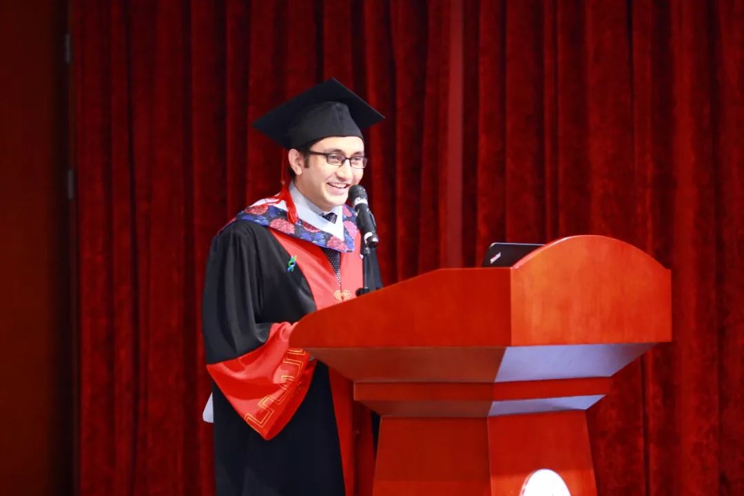 接下来,来自巴基斯坦的Muhammad Sohail Raza作为留学生代表发表了演讲。他感谢基因组所带给他家人般的温暖,感谢导师的悉心指导。毕业不是结束,新的旅程才刚刚开始,Sohail希望大家从平凡的事业着手,勤于思考,勇于冒险,坚持自我,尽己所能,奉献社会,成就伟大的人生。