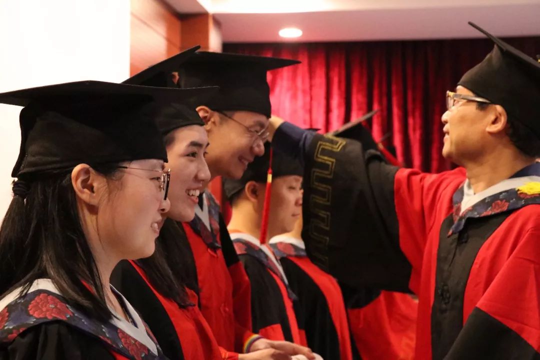 随后,身着学位服的毕业生们依次上台,所领导和导师代表为毕业生们行拨穗礼,象征着毕业生们完满地结束了自己的研究生生涯。