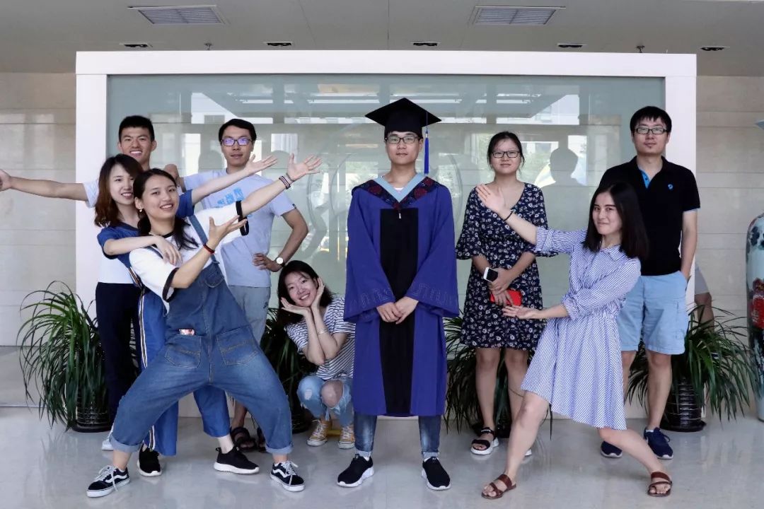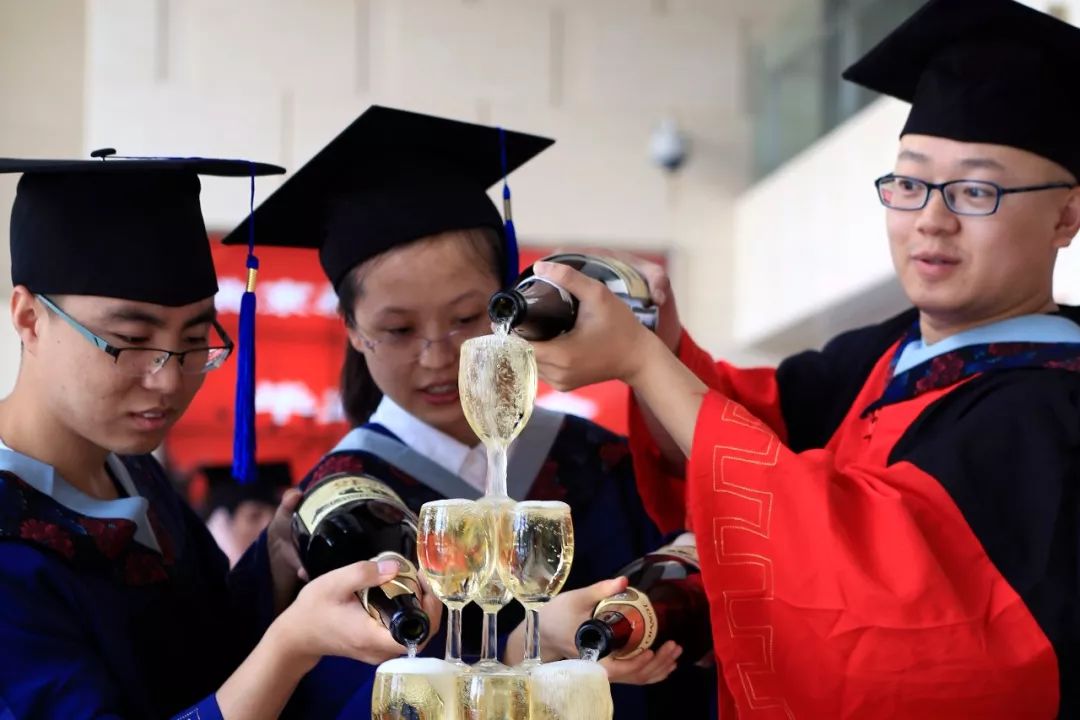 最后,同学们和出席毕业典礼的老师们在研究所所北门集体合影留念并举行温馨欢快的庆祝会。挥帽合影,举杯畅饮,本届毕业典礼在同学们的欢声笑语中划上句号。
