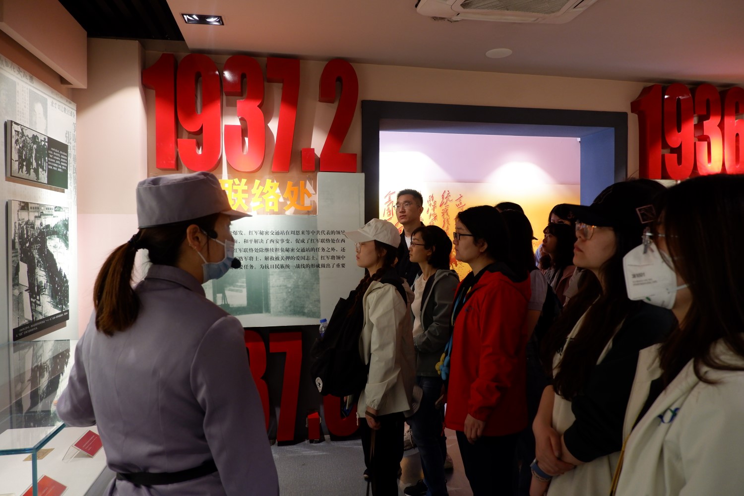 八路军西安办事处是中共中央设立的秘密交通站、“红军联络站”和“国民革命军第八路军驻陕办事处”。西安办事处为党和国家输送了大批爱国的革命者和进步学生,解救了大批潜伏在国民党身边为国奋战的伤员,为新中国的成立做出了不可磨灭的贡献。在馆内,支部党员了解了八路军的日常生活、观看了抗日宣传单以及那些珍贵的历史文物和照片。和夫红同志说道:“不足一平米的小小发报地下室,记录着当年革命斗争的艰苦和革命同志的毅力。国外友人的支持、学生们的爱国运动,都让我切身感受到当年艰苦环境下依然抵挡不住的蓬勃精神风貌。”王翠同志说道:“我们参观八路军西安办事处时正遇到小学生在进行爱国主义教育,很欣慰看到祖国的花朵沐浴爱国的阳光雨露茁壮成长,同时感受到了周边群众对我们党员活动的欢迎和赞赏,心里感觉很光荣。”