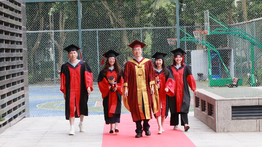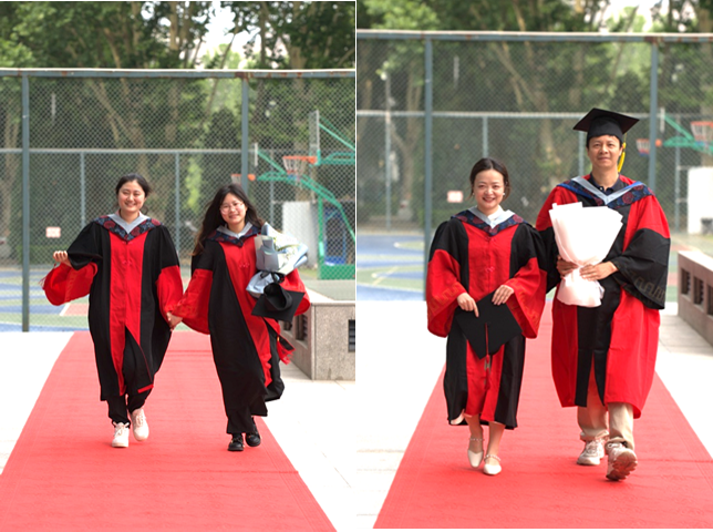 最后,在喜庆欢快的音乐声中,学位授予仪式正式开始,王前飞副主任宣读毕业生名单,杨运桂主任逐一为毕业生们扶正流苏,颁发毕业证书,并与每一位毕业生合照留念。