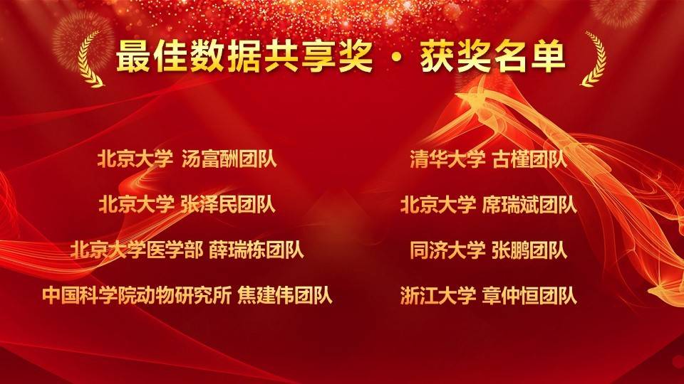 该奖项着重评价数据共享的覆盖面与实施效能,依据NGDC人类遗传资源管理系统中数据集的申请量、批准数及通过率等指标综合评定。最终共有8支团队脱颖而出,他们以实际行动推动数据资源规范化、规模化共享,成为科学数据开放理念的积极践行者。