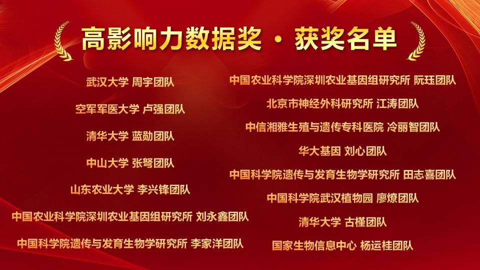 国家基因组科学数据中心颁发2025年度“最佳数据共享奖”与“高影响力数据奖”