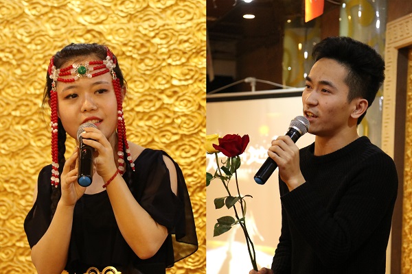 所领导及导师代表也为大家带来了精彩的节目,王丽萍演唱了充满热情、豪情和柔情的歌曲《我爱祖国的蓝天》,曾长青研究员演唱了舒缓而温情的英文乡村歌曲《Sunshine on My Shoulders》,并送上了真挚的新年祝福,刘凡研究员也为大家吟诗一首,表达了在国外学习和工作时对祖国和家乡的思念之情,并激励同学们坚持不懈、不断奋进,做出高质量的科研成果。