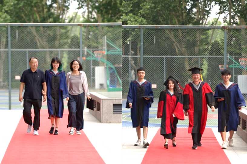 最后,在喜庆欢快的音乐声中,学位授予仪式正式开始,王前飞副主任宣读毕业生名单,杨运桂主任逐一为毕业生们扶正流苏,颁发毕业证书,并与每一位毕业生合照留念。