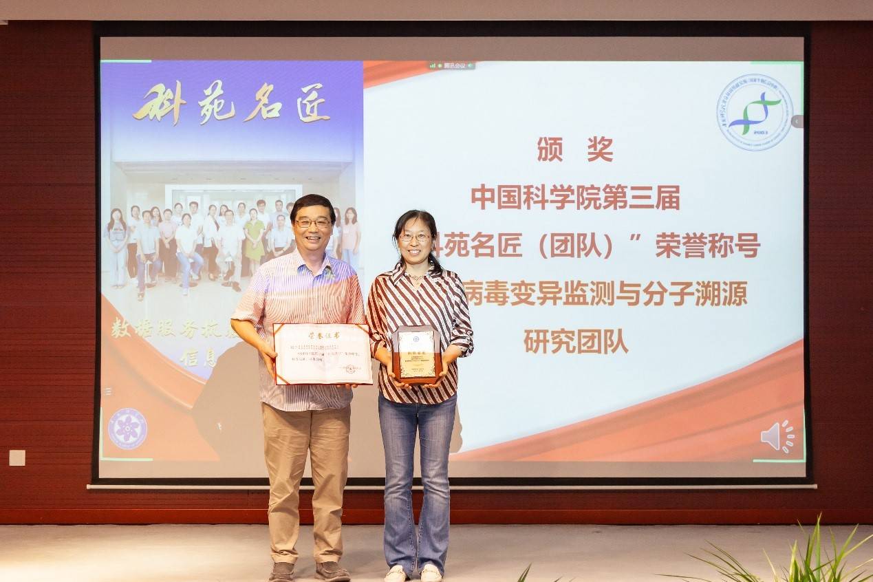 活动开始,所长薛勇彪为获得中科院第三届“科苑名匠(团队)”荣誉的 “新冠病毒变异监测与分子溯源研究团队”颁发了奖牌证书;党委书记黄铁青为被命名为中央和国家机关“四强”党支部的国家基因组科学数据中心支部和精准基因组医学重点实验室第一支部颁发了奖牌。